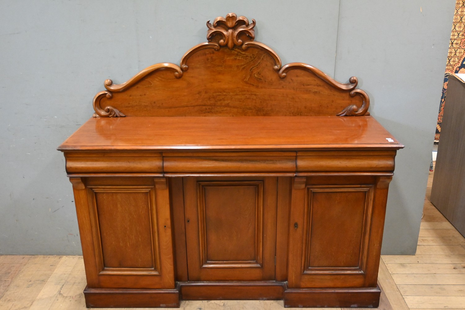 A SUBSTANTIAL VICTORIAN BREAK FRONT CEDAR SIDEBOARD (160H X 163W X 55D CM) (PLEASE NOTE THIS HEAVY ITEM MUST BE REMOVED BY CARRIERS AT THE CUSTOMER'S EXPENSE. LEONARD JOEL STAFF CANNOT ASSIST CARRYING THIS ITEM) (X-LARGE ITEM)