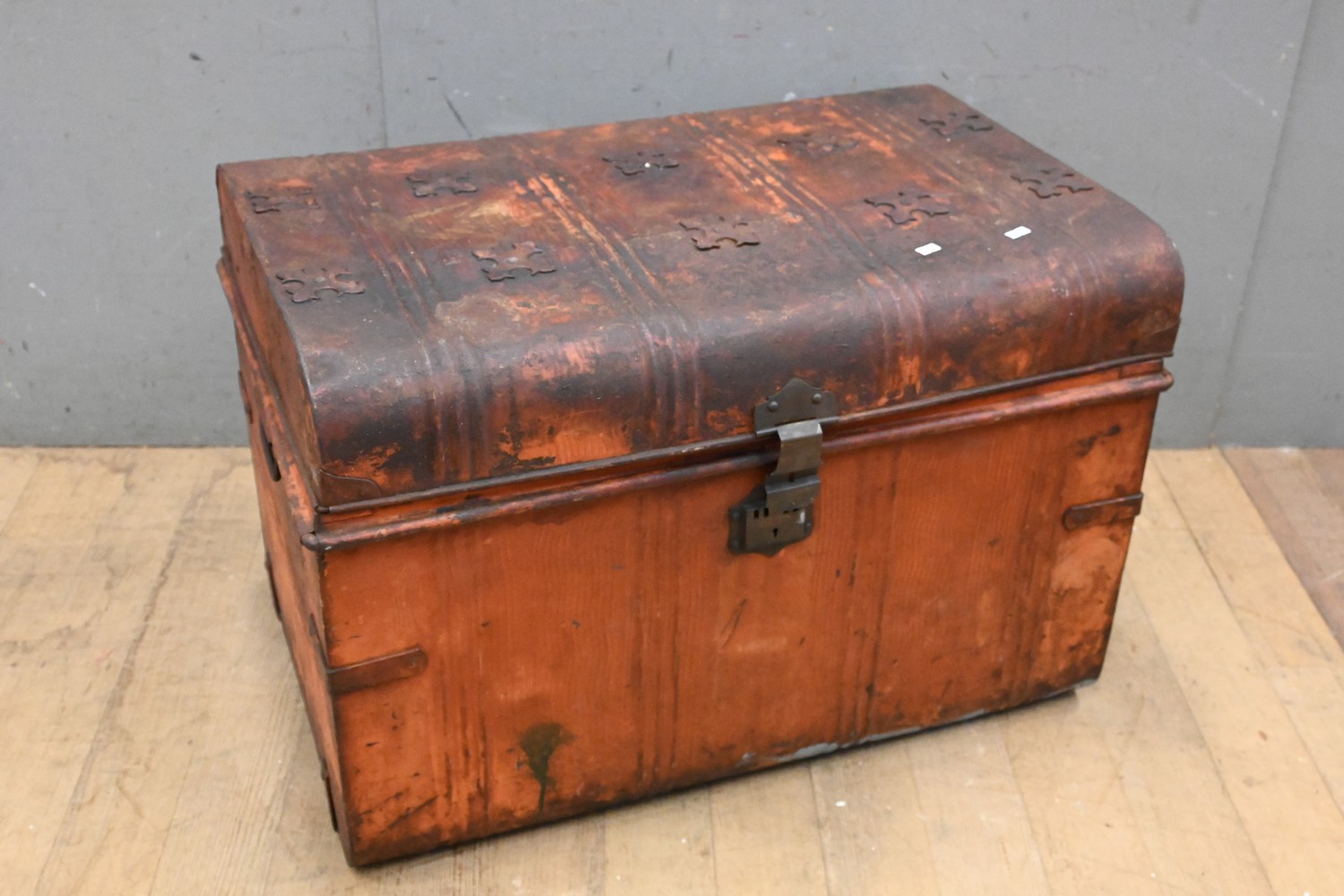 A LARGE METAL TRUNK (A/F) (56H X 82W X 57D CM) (LEONARD JOEL DELIVERY SIZE: X-LARGE)
