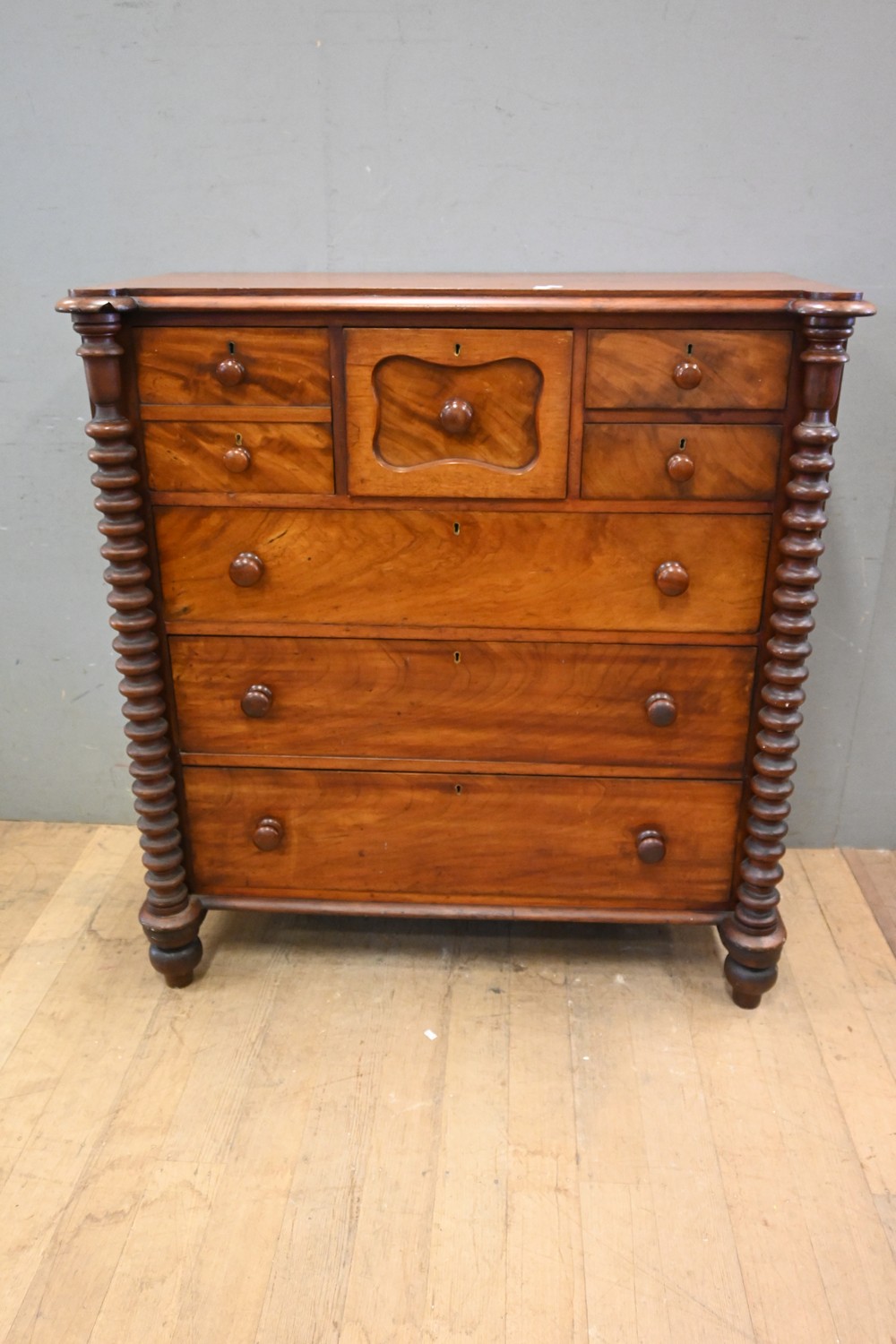 A VICTORIAN SEVEN DRAWER TALL BOY (A/F) (123H X 117W X 55D CM) (PLEASE NOTE THIS HEAVY ITEM MUST BE REMOVED BY CARRIERS AT THE CUSTOMER'S EXPENSE. LEONARD JOEL STAFF CANNOT ASSIST CARRYING THIS ITEM) (X-LARGE ITEM)