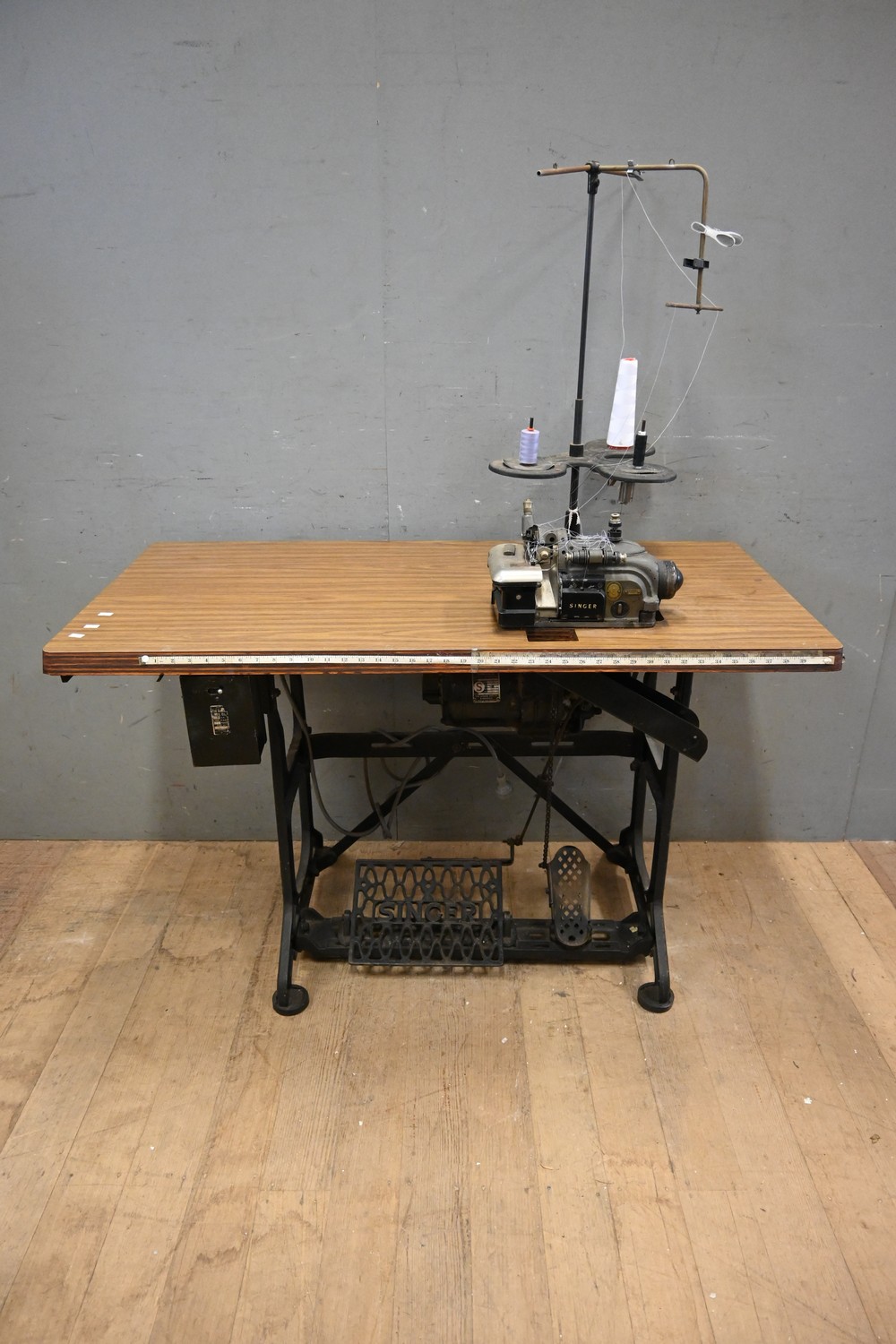 AN INDUSTRIAL SINGER SEWING MACHINE (A/F) ( 148H X 122W X 61D CM) (PLEASE NOTE THIS HEAVY ITEM MUST BE REMOVED BY CARRIERS AT THE CUSTOMER'S EXPENSE. LEONARD JOEL STAFF CANNOT ASSIST CARRYING THIS ITEM) (X-LARGE ITEM)