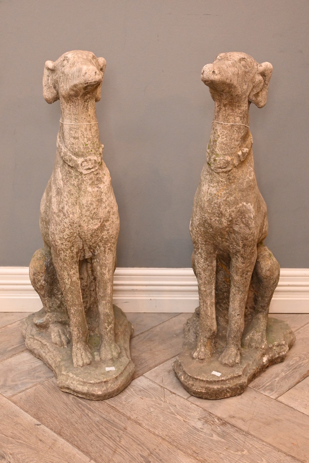 A PAIR OF FRENCH COMPOSITE STONE SEATED DOGS (81H CM) (PLEASE NOTE THIS HEAVY ITEM MUST BE REMOVED BY CARRIERS AT THE CUSTOMER'S EXPENSE. LEONARD JOEL STAFF CANNOT ASSIST CARRYING THIS ITEM) (X-LARGE ITEM)