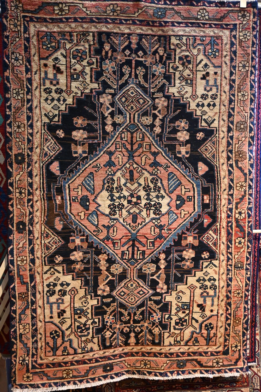 A TRIBAL PERSIAN VINTAGE PILE BAKHTIAR RUG. 100% DENSE WOOL, NATURAL DYES. HAND-KNOTTED TRIBAL WEAVE WITH AND DESIGN OF TRIPLE DIAMOND SHAPED MEDALLIONS IN A FIELD OF SECONDARY TRIBAL FLORAL PATTERNS. BEAUTIFUL VIBRANT COLOURS. SOLID AND HARD-WEARING. SIZE: 205 X 134CM ORIGIN: PERSIA - RRP: $2,400 DOCUMENTATION OF AUTHENTICITY INCLUDED.