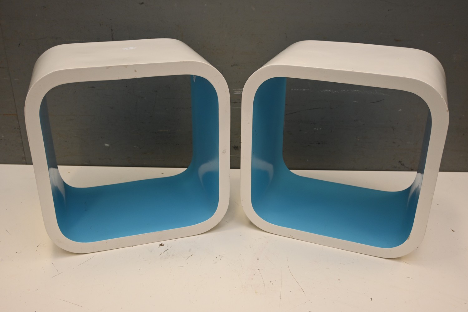 A PAIR OF RETRO WOODEN DISPLAY BLOCKS (A/F) (34H X 31W X 20D CM) (LEONARD JOEL DELIVERY SIZE: MEDIUM)