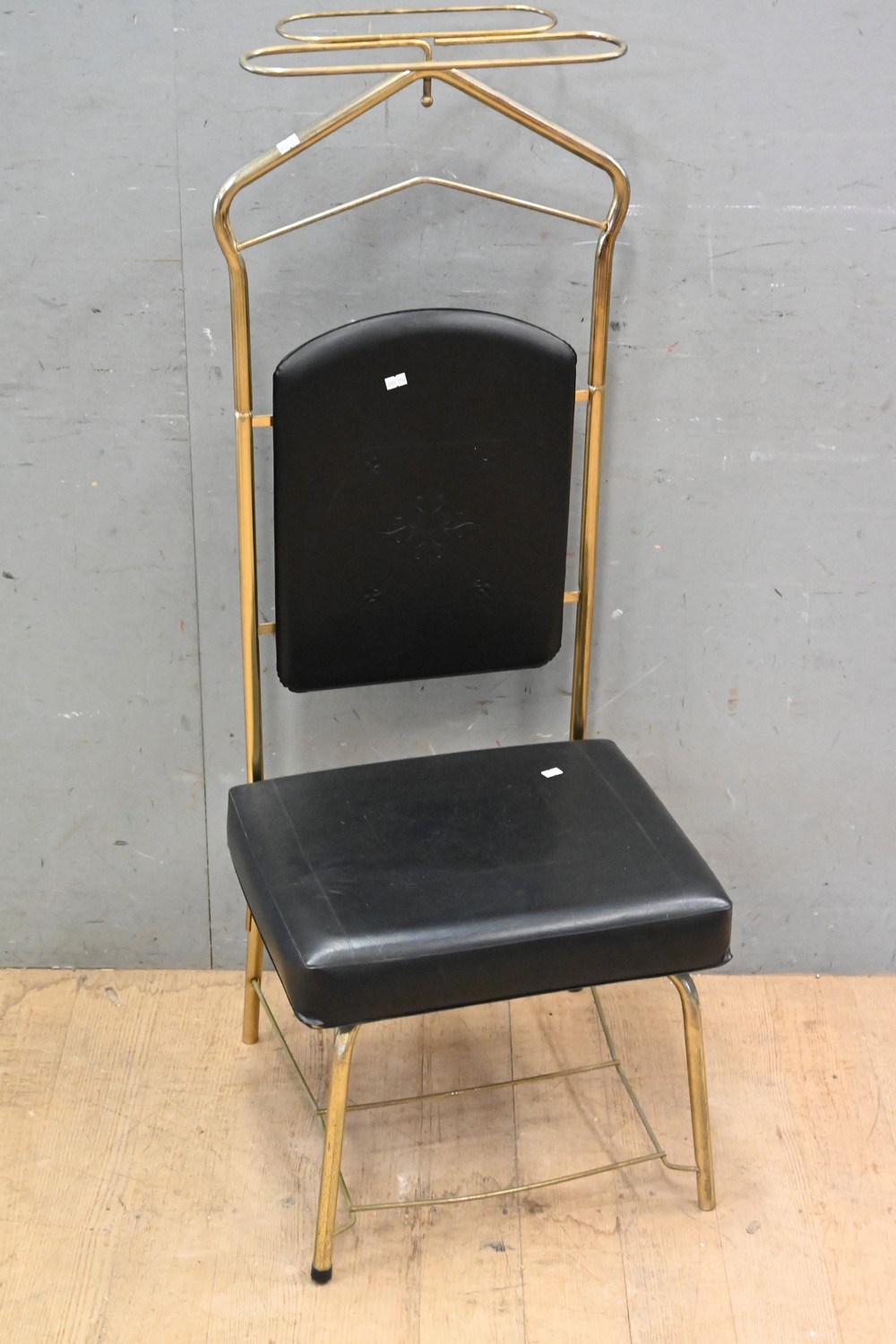 A RETRO ANODISED METAL AND ORIGINAL UPHOLSTERED VALET SEAT (120H X 49W X 45D CM) (LEONARD JOEL DELIVERY SIZE: LARGE)