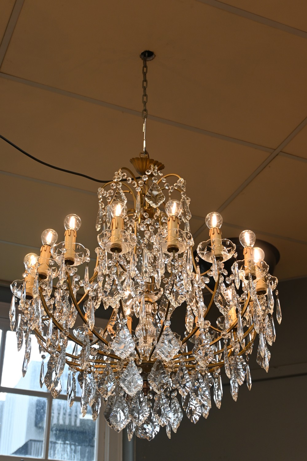 A SIXTEEN GLOBE MID 20TH CENTURY ITALIAN GLASS CHANDELIER (100H X 80D CM) (LEONARD JOEL DELIVERY SIZE: X-LARGE)