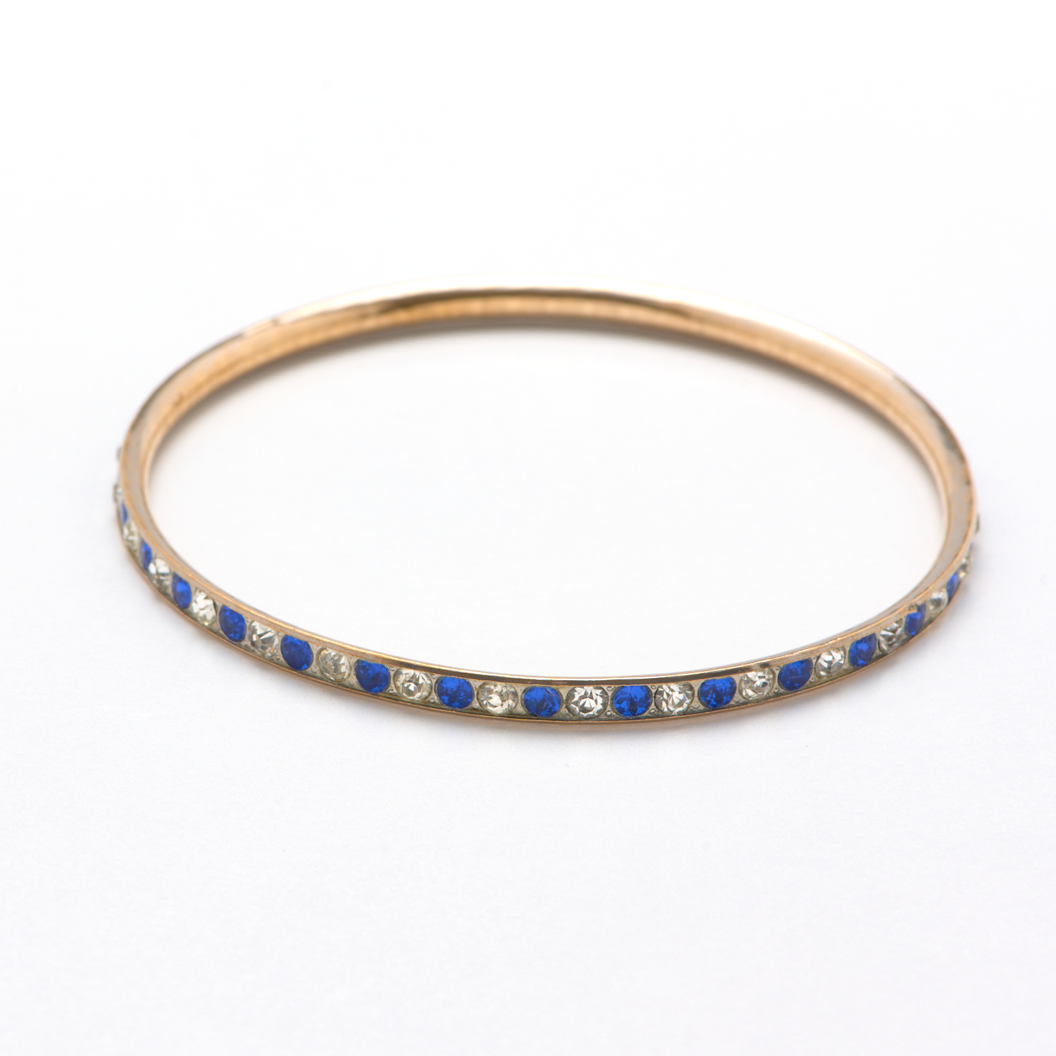 A GOLD LINED PASTE SET UPPER ARM BANGLE, DIAMETER APPROXIMATELY 85MM
