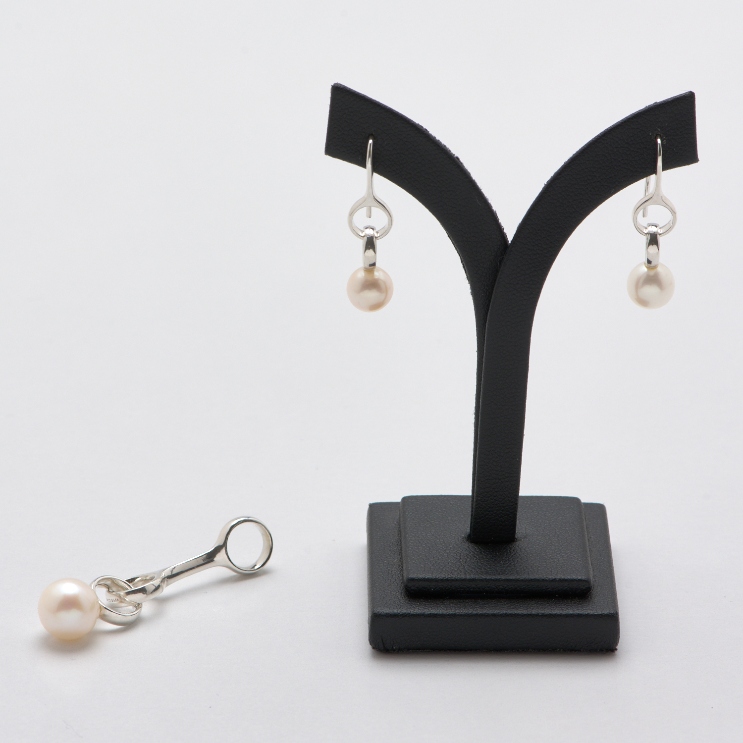 A PAIR OF SILVER AND PEARL EARRINGS AND A PENDANT BY GEORG JENSEN, SIGNED GJ 925S, PEALRS MEASURING 7.96 AND 10.13MM