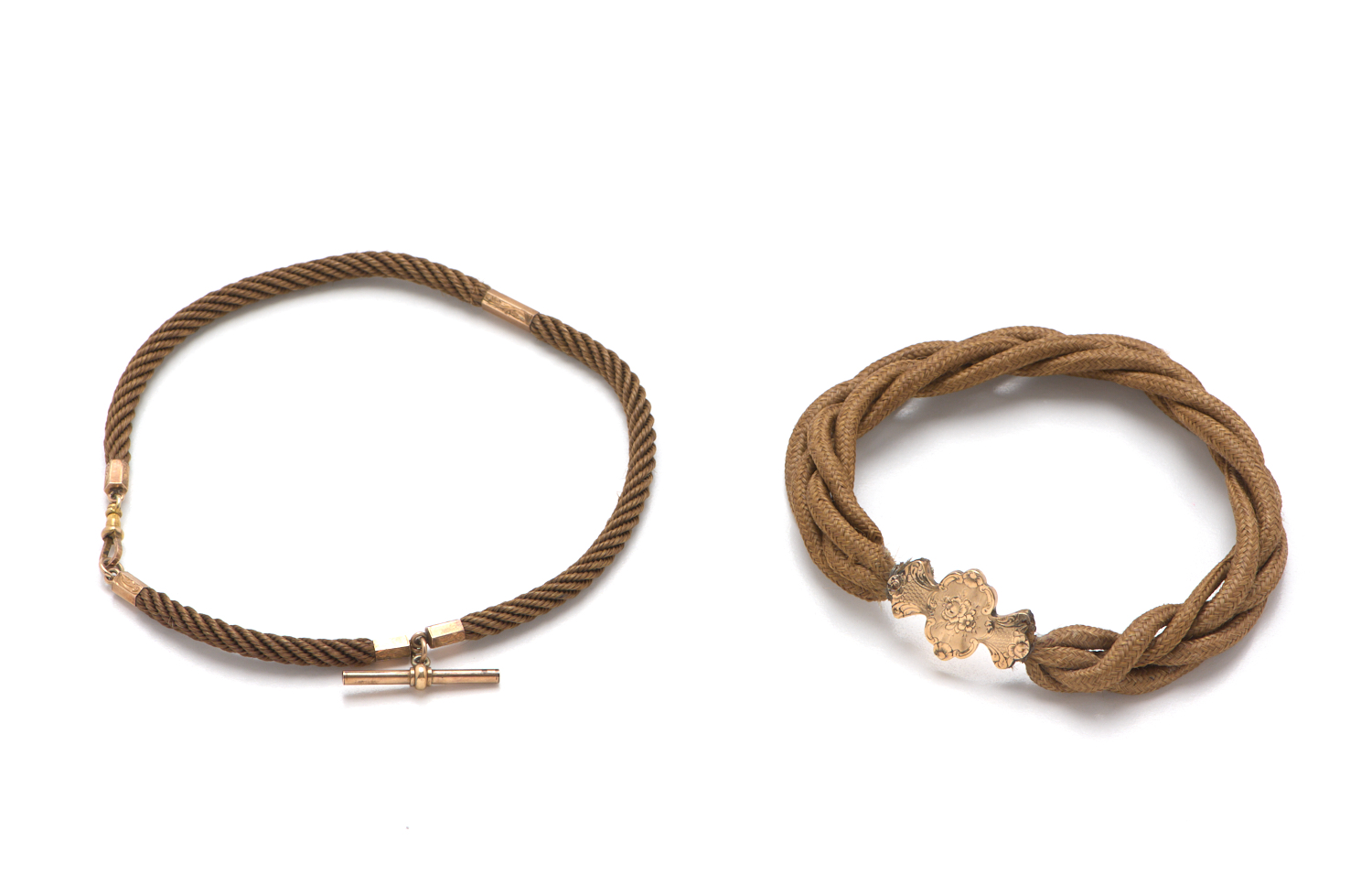 A VICTORIAN HAIR ALBERT AND CHOKER WITH GOLD FITTINGS, CIRCA 1880