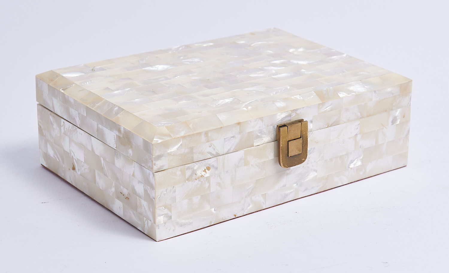 A MOTHER OF PEARL COVERED JEWELLERY BOX WITH LIFT OUT VELVET TRAY, H.7 X W.25 X D.18CM, LEONARD JOEL LOCAL DELIVERY: SMALL