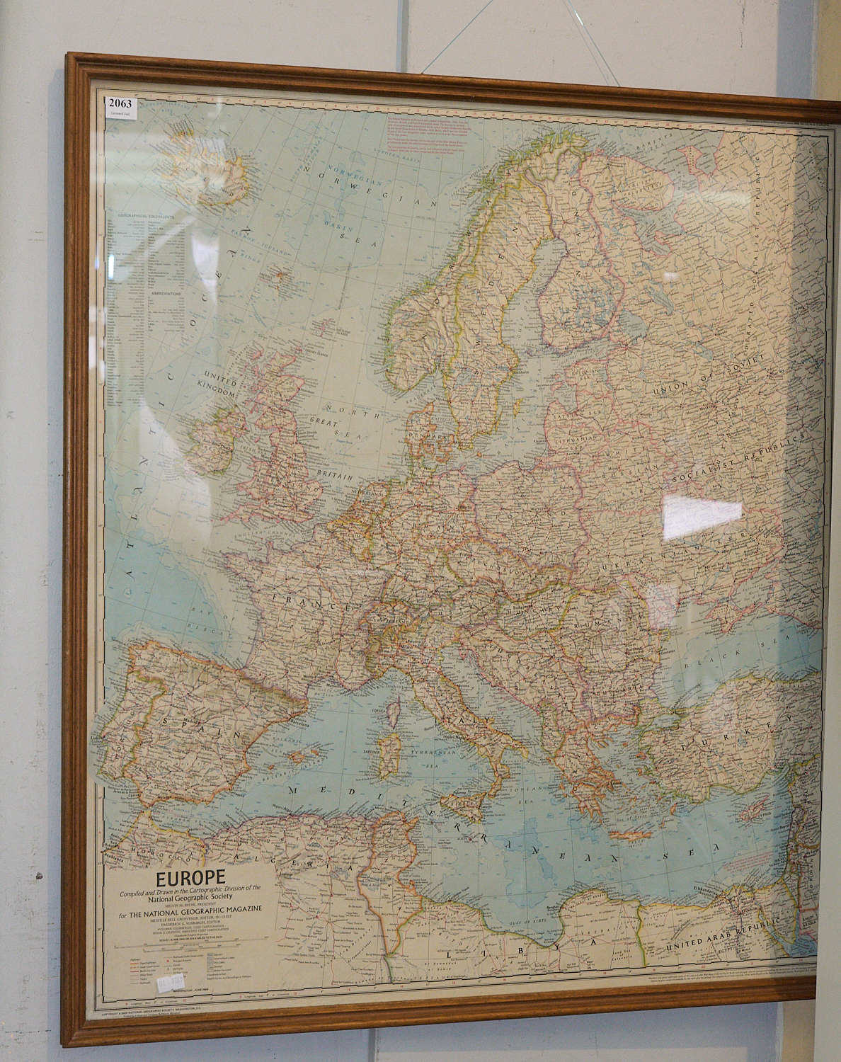 A VINTAGE WOODEN FRAMED NATIONAL GEOGRAPHIC MAP OF EUROPE H.79CM X W.70CM, LEONARD JOEL LOCAL DELIVERY: MEDIUM