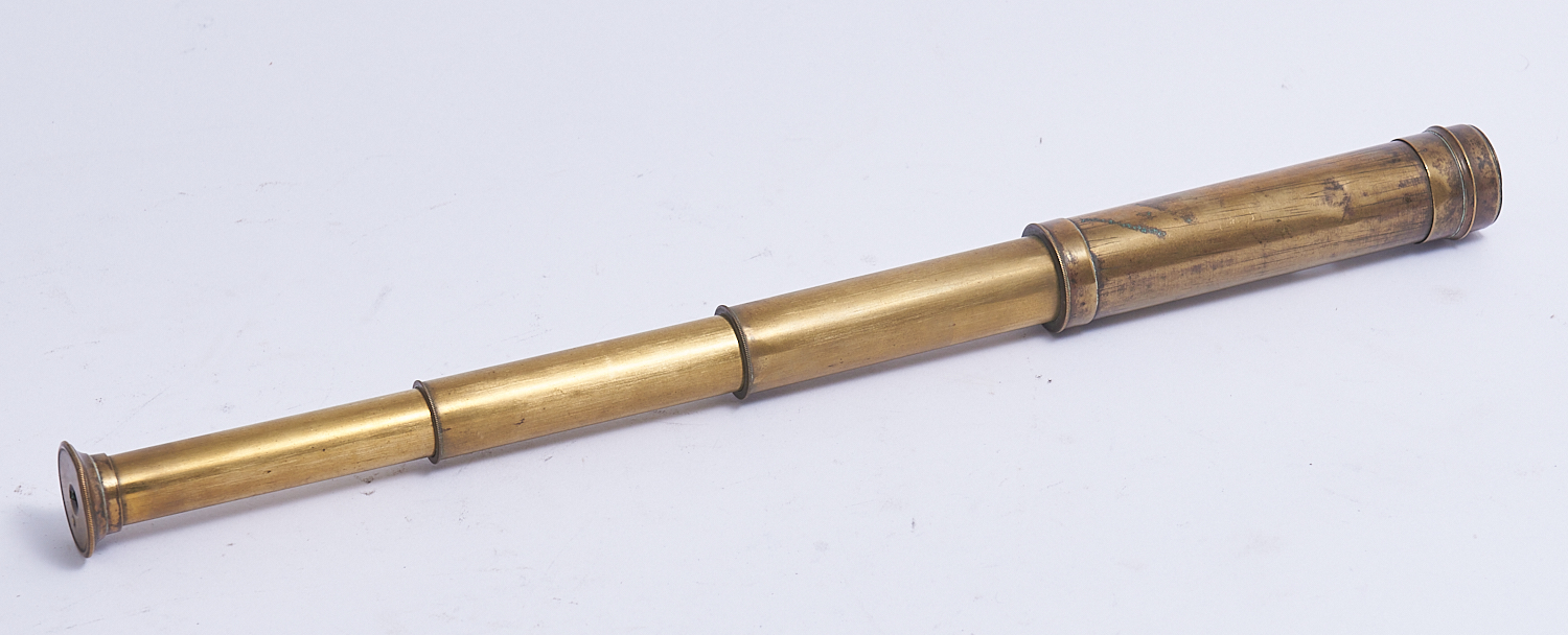 AN ENGLISH BRASS FOUR DRAW TELESCOPE L.15CM, LEONARD JOEL LOCAL DELIVERY: SMALL