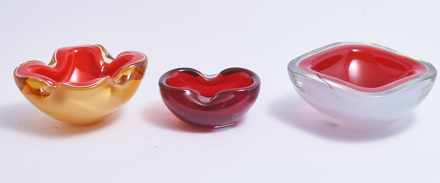 THREE VINTAGE ART GLASS BOWLS W.15CM, LEONARD JOEL LOCAL DELIVERY: SMALL