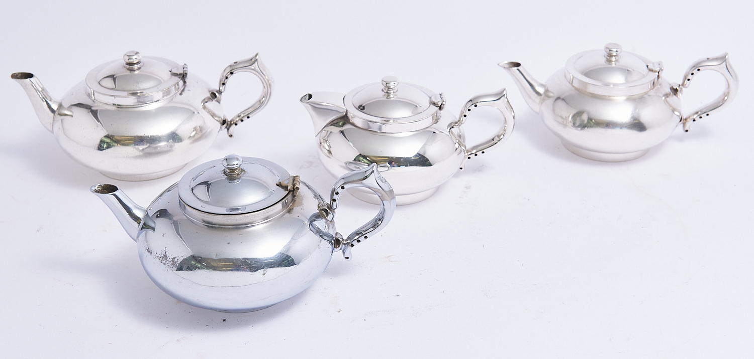 THREE ROBUR SILVER PLATE TEAPOTS AND WATER POT (A/F), LEONARD JOEL LOCAL DELIVERY: SMALL