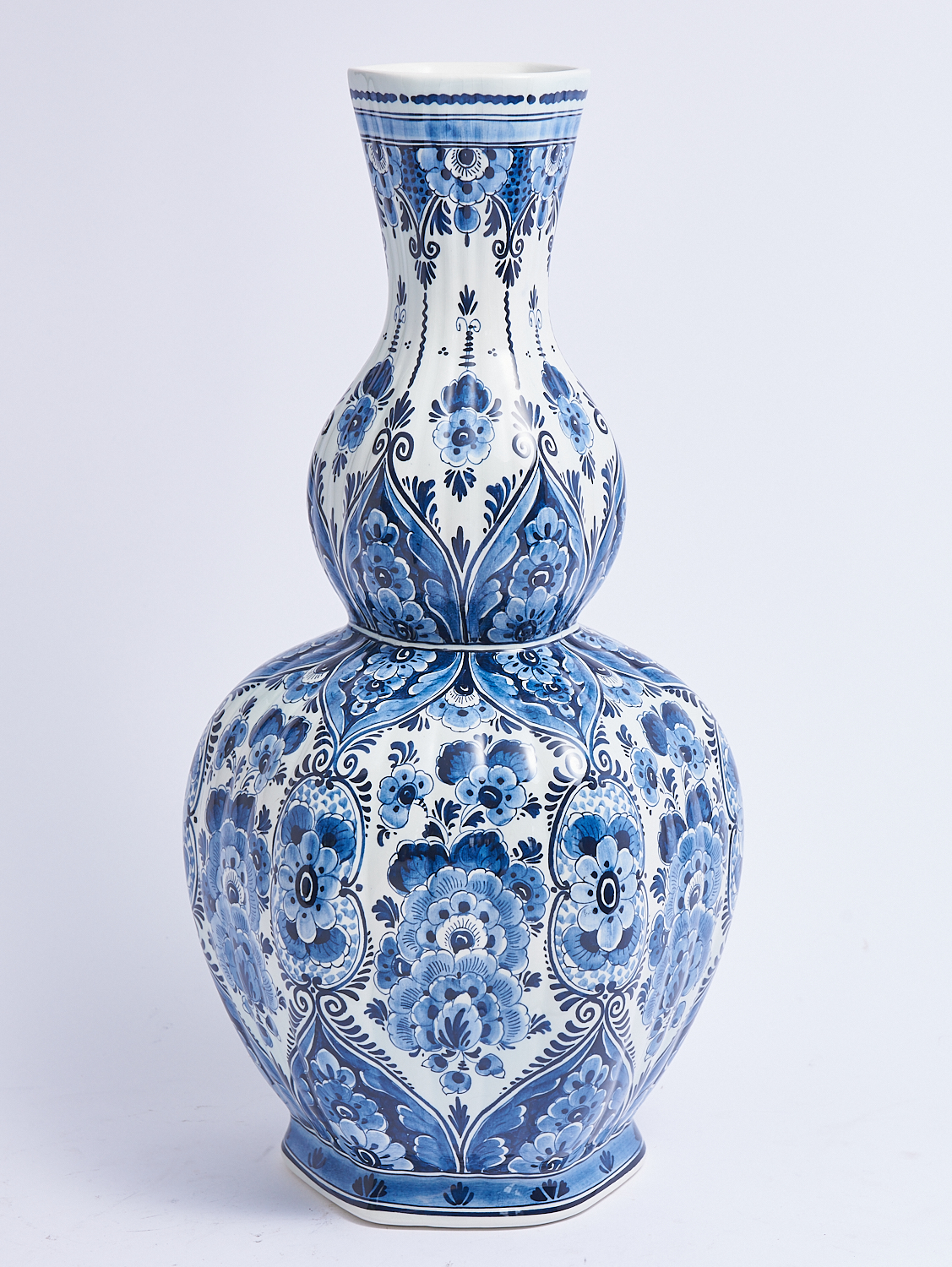 A 1920S DUTCH DELFT BLAUW HAND PAINTED BLUE AND WHITE VASE, H.50CM, LEONARD JOEL LOCAL DELIVERY: MEDIUM
