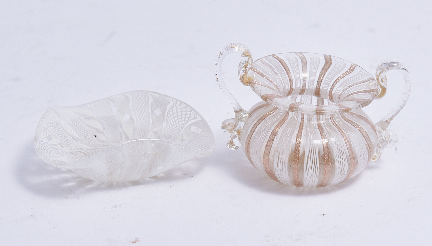 TWO SMALL VINTAGE ITALIAN GLASS ITEMS INCLUDING VASE AND BOWL, H.5CM, LEONARD JOEL LOCAL DELIVERY: SMALL