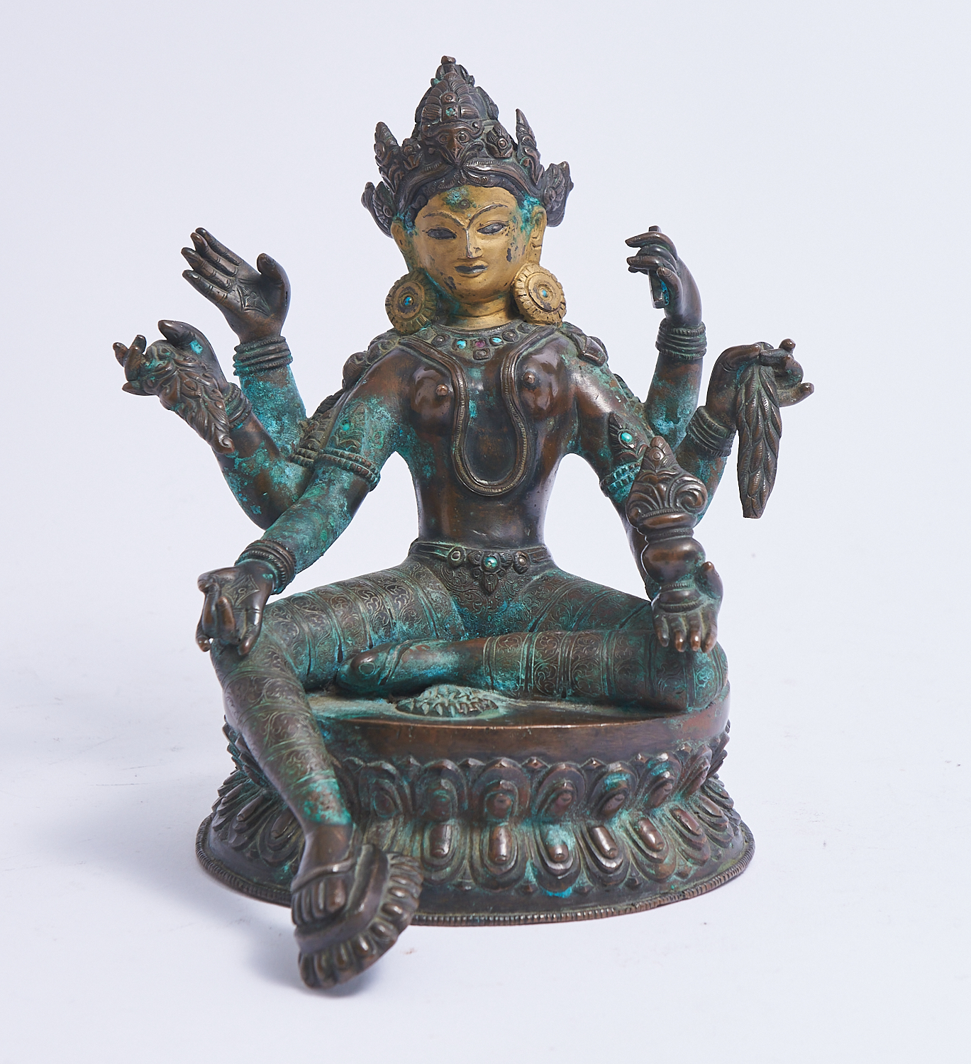 A BRONZE FIGURE OF GODDESS WITH INSET STONES, H.22CM, LEONARD JOEL LOCAL DELIVERY: SMALL