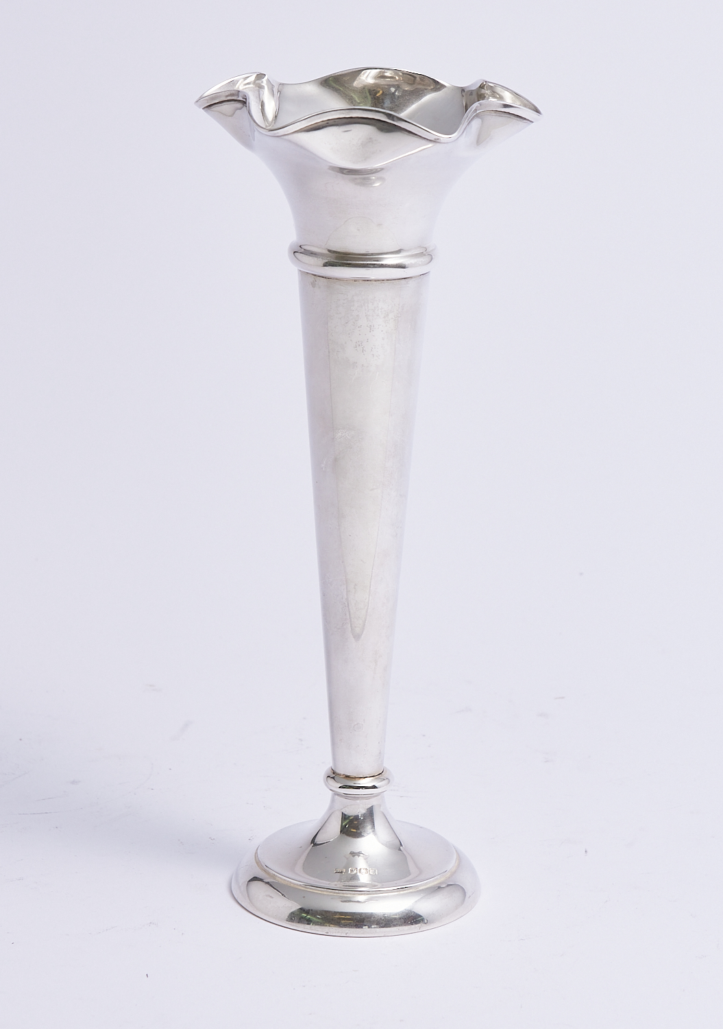 A STERLING SILVER FLUTED VASE, WEIGHTED BASE H.27.5CM, LEONARD JOEL LOCAL DELIVERY: SMALL