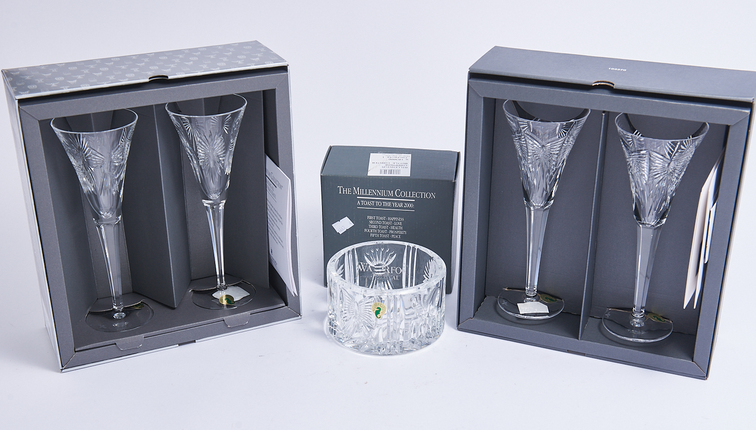 TWO SETS OF WATERFORD CRYSTAL TOASTING GLASSES TOGETHER WITH BOWL, LEONARD JOEL LOCAL DELIVERY: MEDIUM