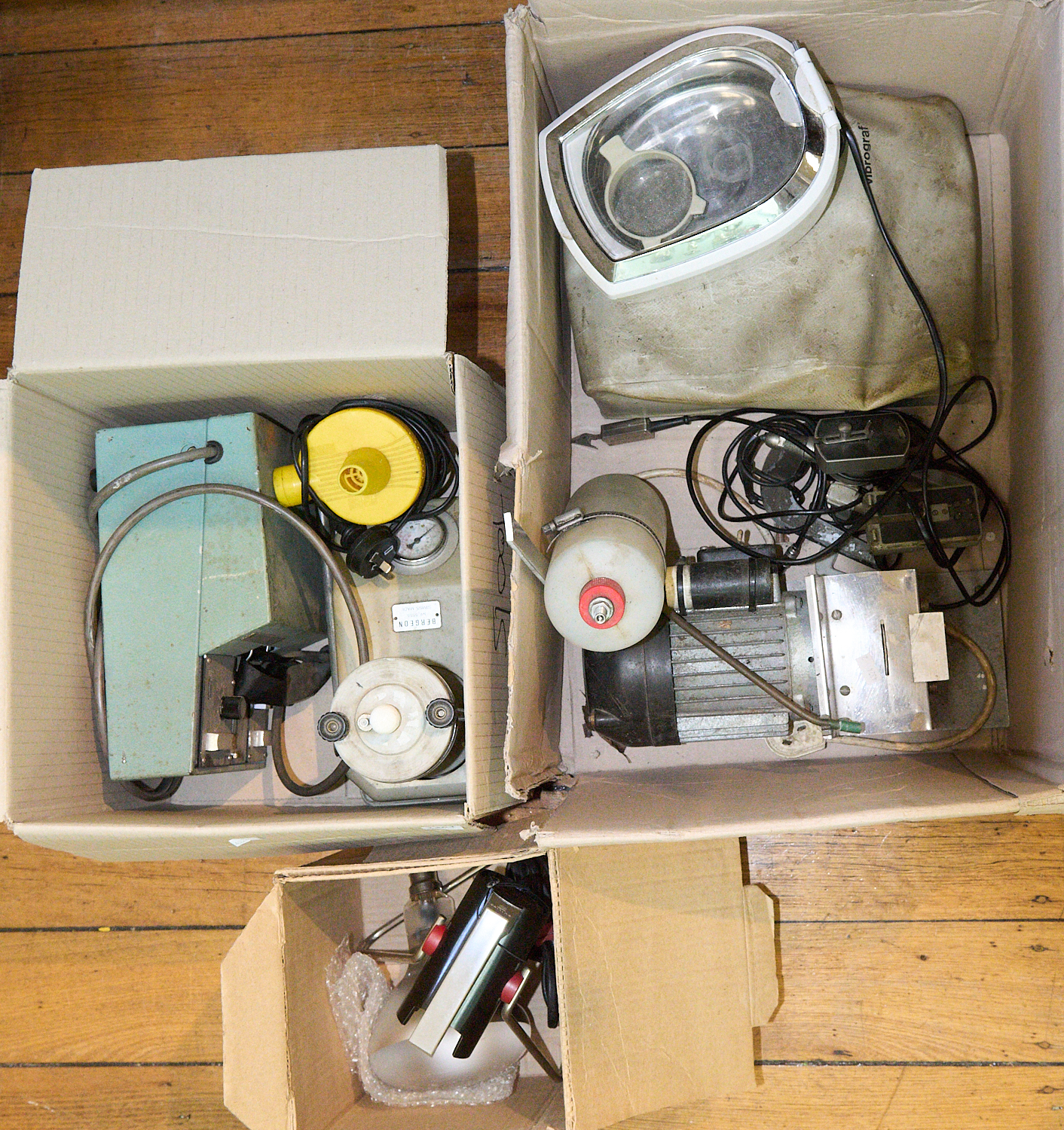 A COLLECTION OF WATCH MAKER'S EQUIPMENT INCLUDING VIBROPRAF, MINIATURE SAW AND BERGEON, LEONARD JOEL LOCAL DELIVERY: MEDIUM