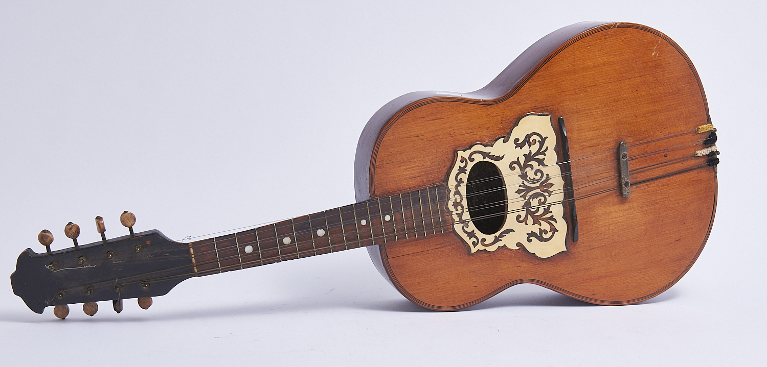 A RETRO MANDOLINETTO WITH DECORATION TO BACK L.62CM, LEONARD JOEL LOCAL DELIVERY: MEDIUM