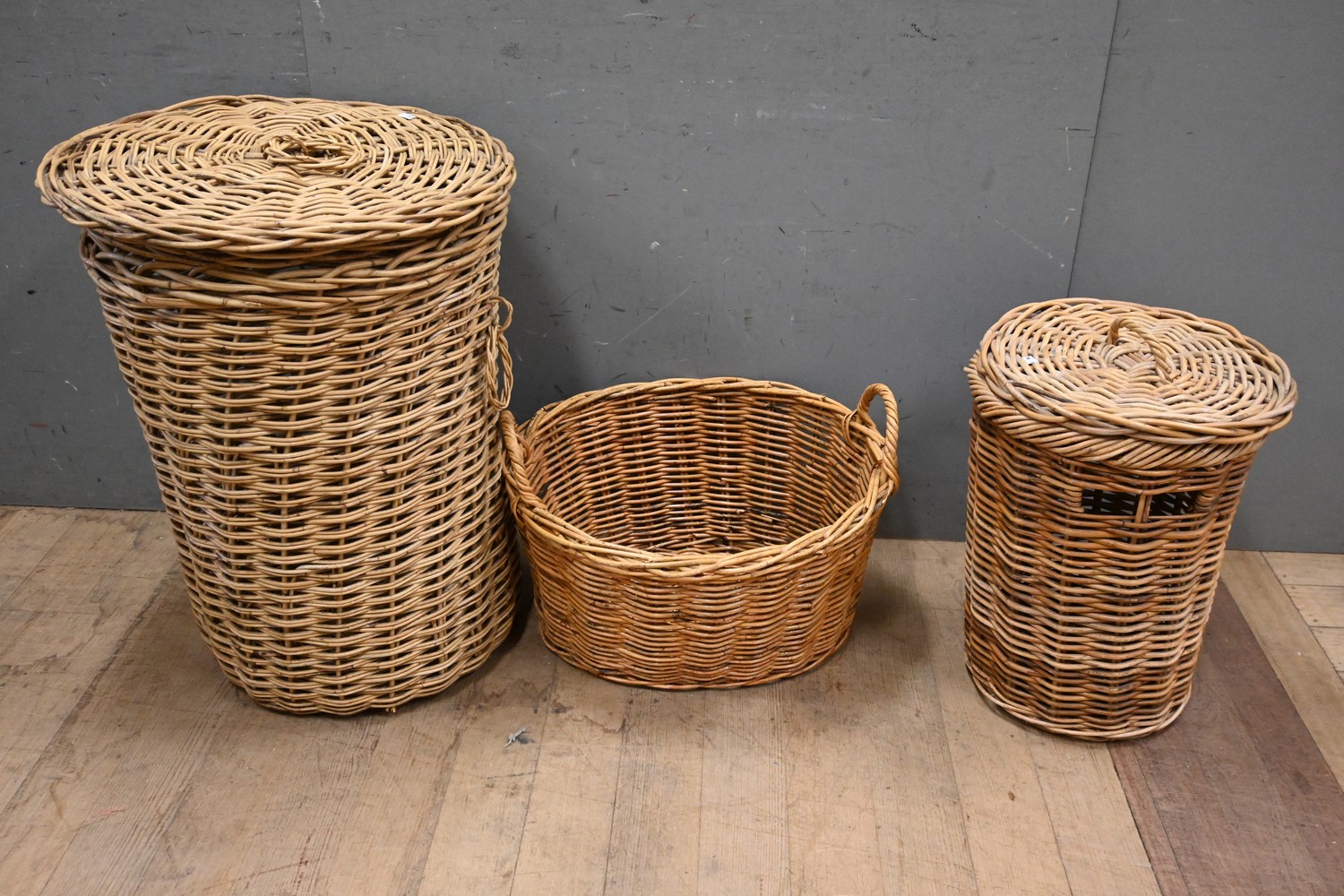 A COLLECTION OF THREE BASKETS (73H X 57D CM) (LEONARD JOEL DELIVERY SIZE: MEDIUM)