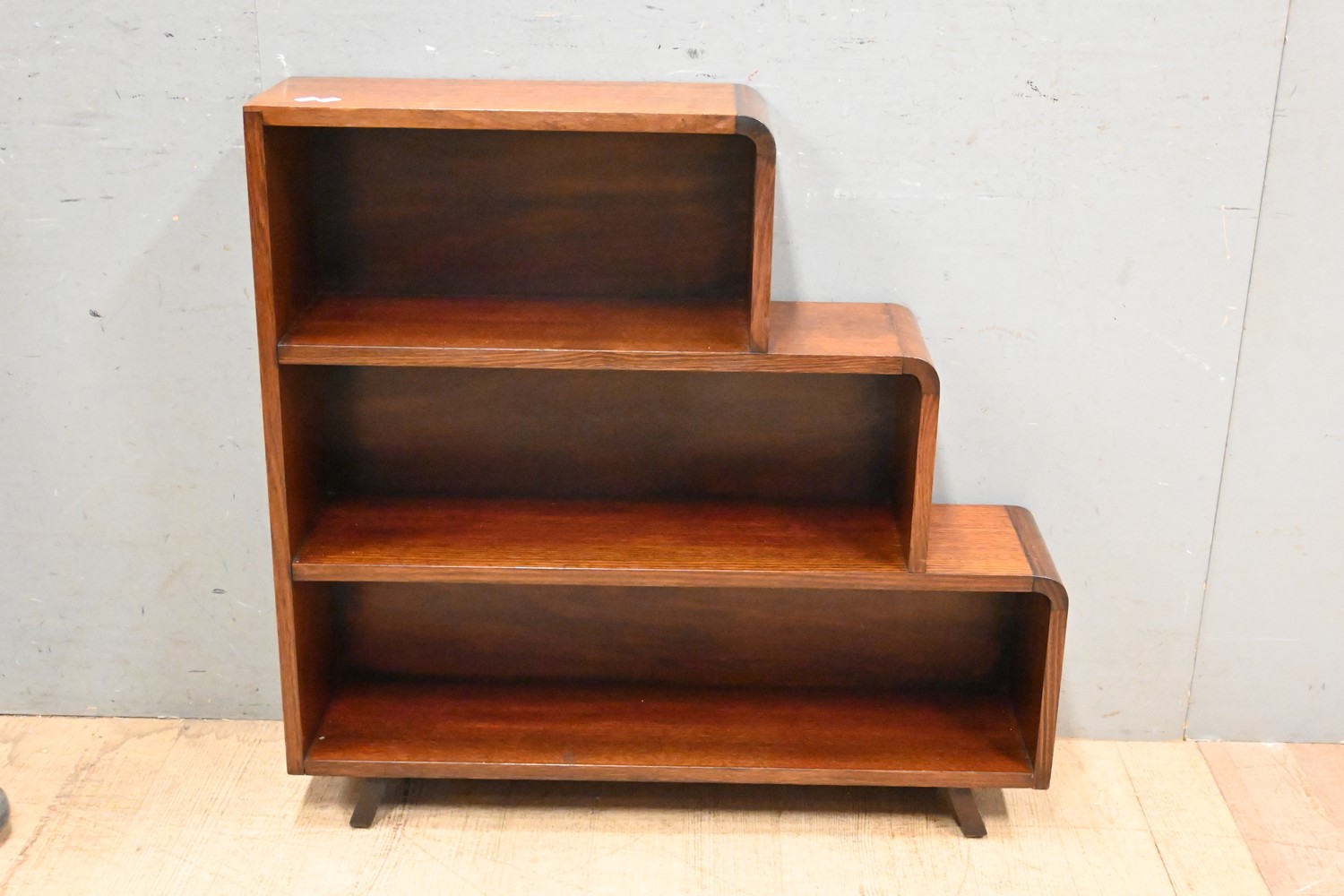 A SOLID OAK ART DECO STEP BOOKCASE (83H X 90W X 20D CM) (LEONARD JOEL DELIVERY SIZE: LARGE)