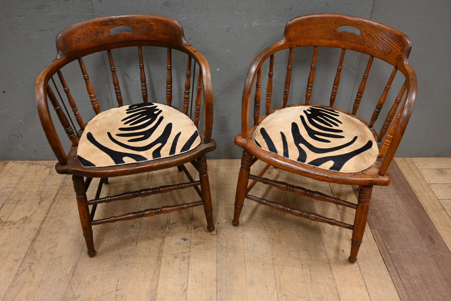 A PAIR OF AMERICAN OAK SPINDLE BACK CHAIRS (76H X 54W X 55D CM) (LEONARD JOEL DELIVERY SIZE: LARGE)
