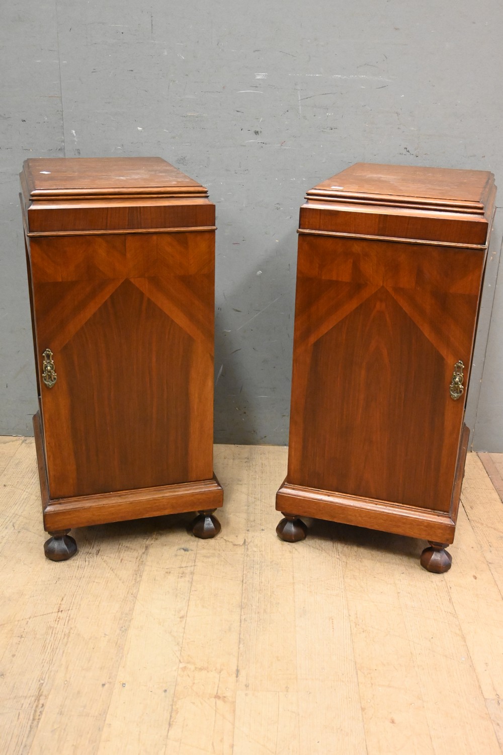 A PAIR OF ART DECO WALNUT BEDSIDE CABINETS (80H X 36W X 48D CM) (LEONARD JOEL DELIVERY SIZE: LARGE)