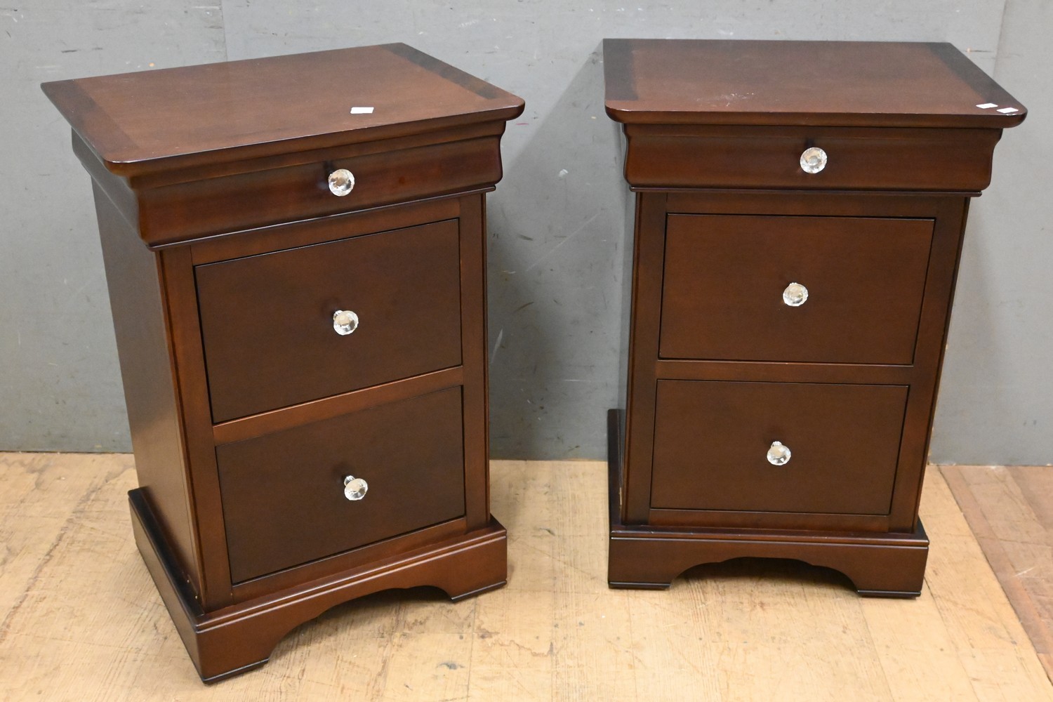 A PAIR OF EASTGATE THREE DRAWER BEDSIDES (70H X 49W X 38D CM) (LEONARD JOEL DELIVERY SIZE: LARGE)