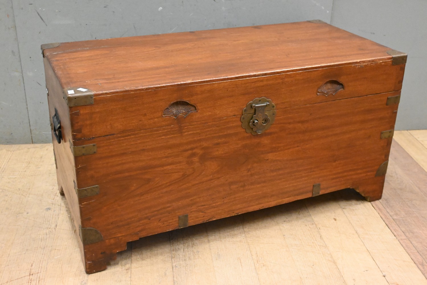 A CHINESE FLIP TOP TRUNK WITH BRASS BOUND DETAILING (48H X 94W X 45D CM) (LEONARD JOEL DELIVERY SIZE: X-LARGE)