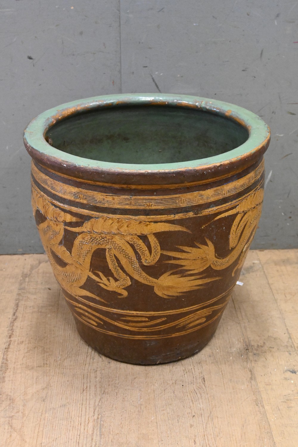 AN ORIENTAL GLAZED POT (50H X 51D CM) (LEONARD JOEL DELIVERY SIZE: LARGE)