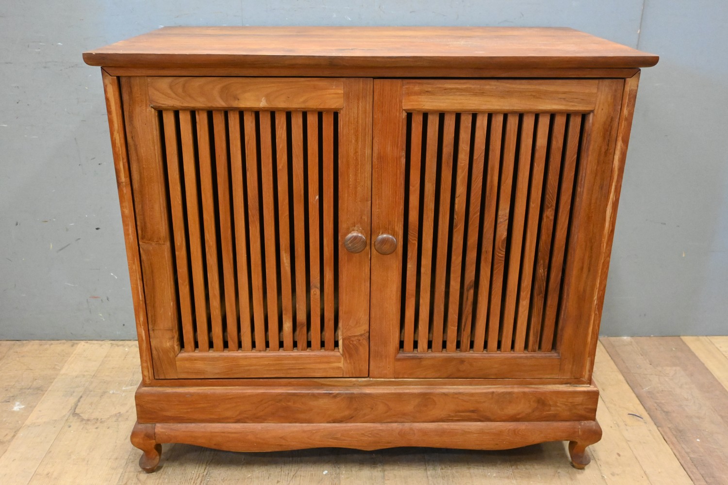 A CONTEMPORARY TEAK CABINET ( 101H X 112W X 65D CM) (PLEASE NOTE THIS HEAVY ITEM MUST BE REMOVED BY CARRIERS AT THE CUSTOMER'S EXPENSE. LEONARD JOEL STAFF CANNOT ASSIST CARRYING THIS ITEM) (X-LARGE ITEM)