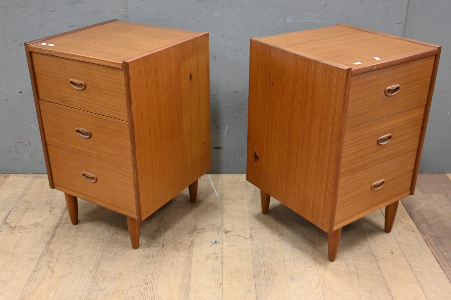 A PAIR OF THREE DRAWER BEDSIDES (A/F) (71H X 44W X 44D CM) (LEONARD JOEL DELIVERY SIZE: LARGE)