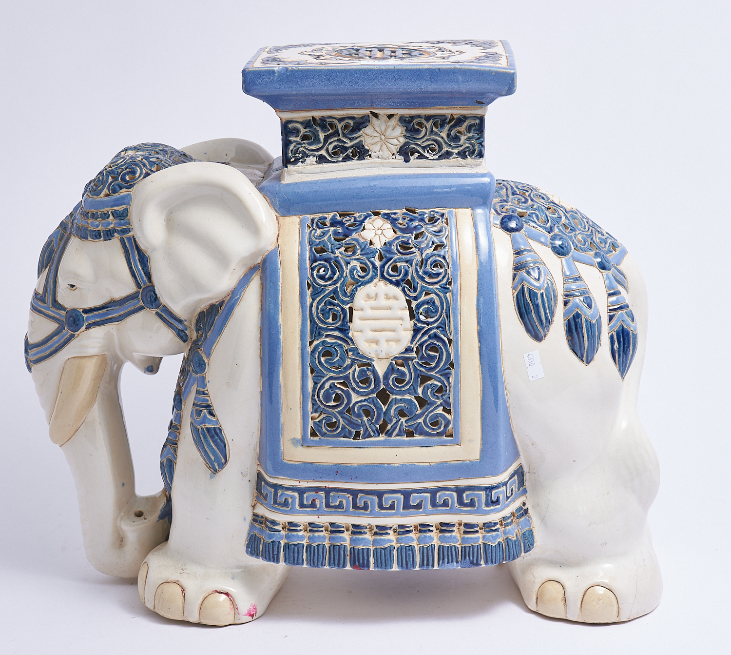 A CERAMIC ELEPHANT INCENSE BURNER H43.5CM X W.55CM, LEONARD JOEL LOCAL DELIVERY: MEDIUM