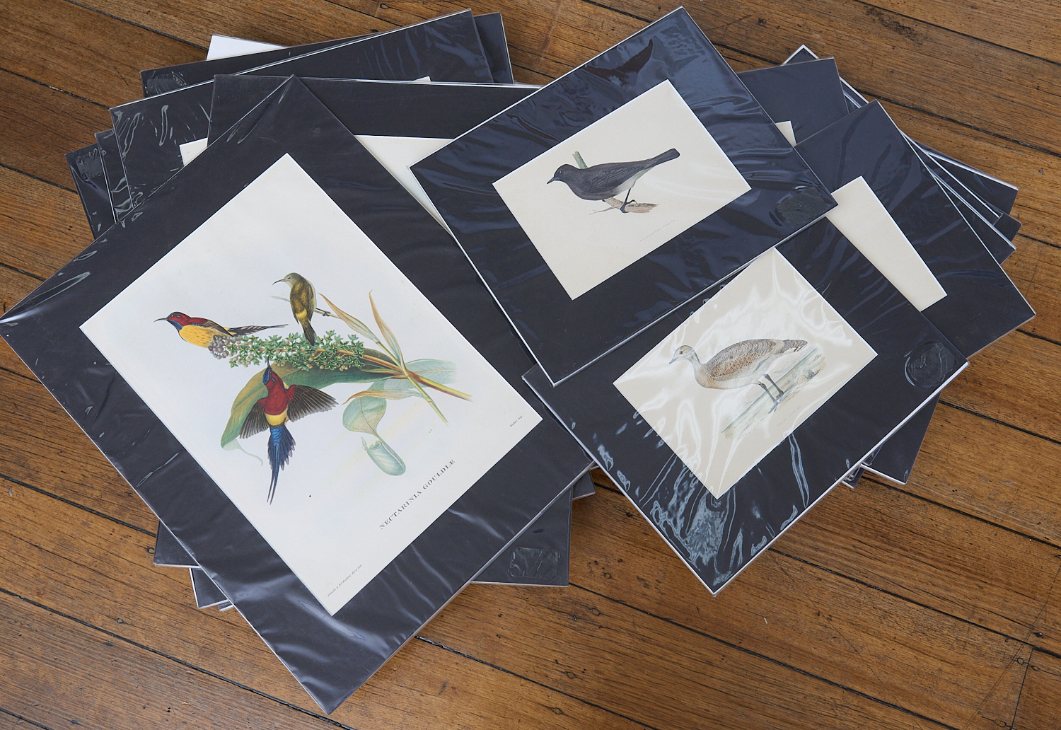 A BOX OF MOUNTED PRINTS INCLUDING JOHN GOULD AND OTHERS H.52.5CM X W.41CM, LEONARD JOEL LOCAL DELIVERY: MEDIUM