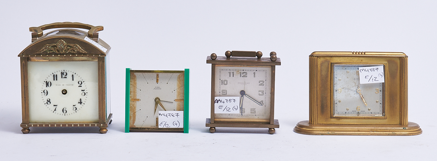 FOUR DESK CLOCKS, TWO BY CYMA AND TWO FRENCH H.10.5CM (TALLEST), LEONARD JOEL LOCAL DELIVERY: SMALL