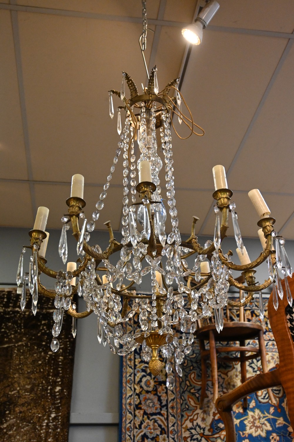 FRENCH NAPOLEON III EMPIRE MANNER CRYSTAL CHANDELIER, C.1880'S (A/F) ( 100H X 70W CM) (PLEASE NOTE THIS HEAVY ITEM MUST BE REMOVED BY CARRIERS AT THE CUSTOMER'S EXPENSE. LEONARD JOEL STAFF CANNOT ASSIST CARRYING THIS ITEM) (X-LARGE ITEM)