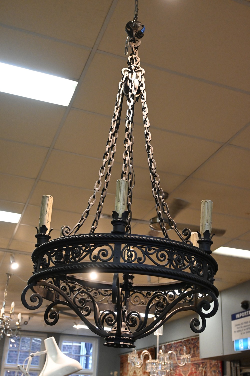 FRENCH RENAISSANCE MANNER HAND FORGED CHANDELIER, C.1900'S (A/F) (147H X 70W CM) (PLEASE NOTE THIS HEAVY ITEM MUST BE REMOVED BY CARRIERS AT THE CUSTOMER'S EXPENSE. LEONARD JOEL STAFF CANNOT ASSIST CARRYING THIS ITEM) (X-LARGE ITEM)