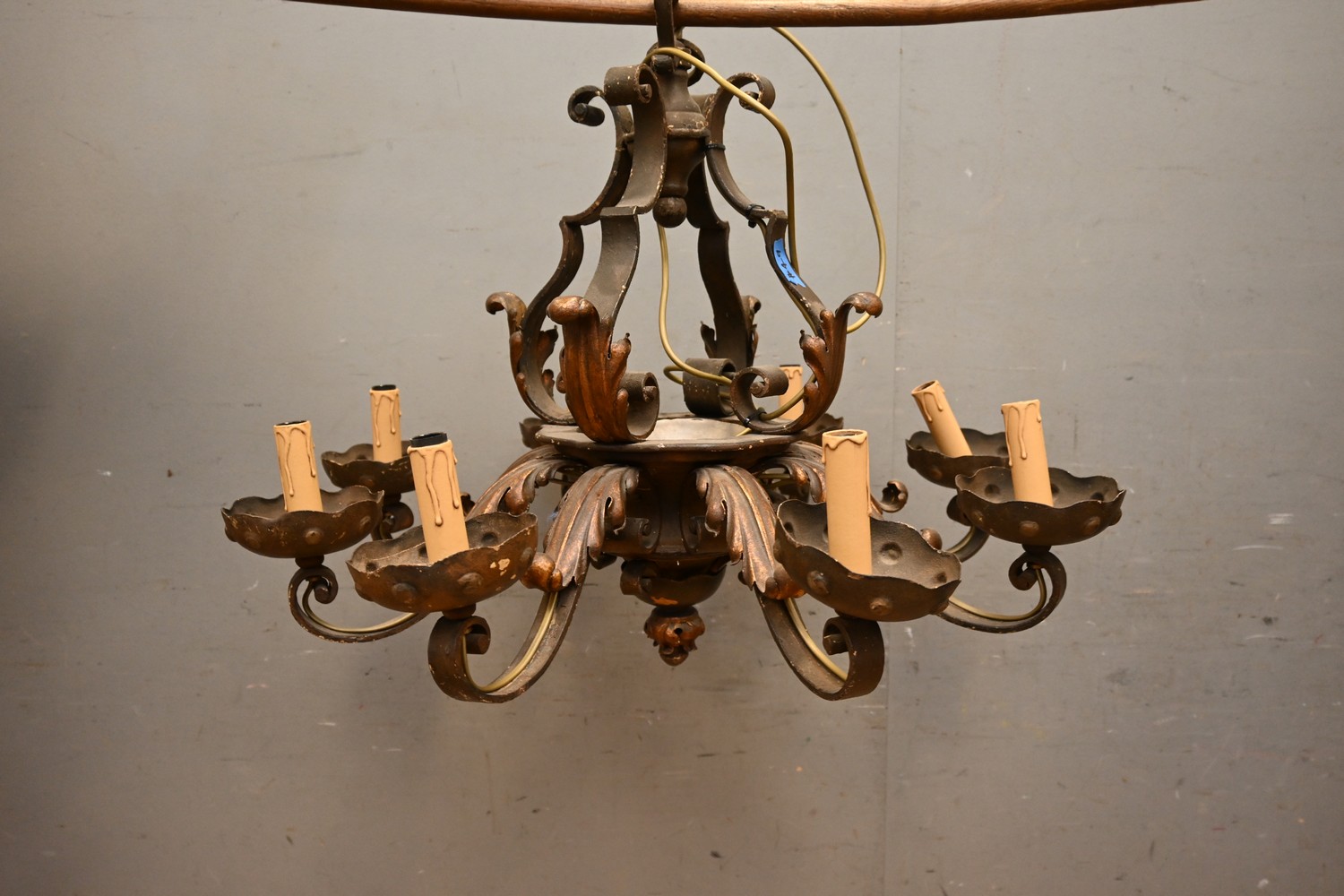 AN IMPORTANT FRENCH ART DECO PERIOD HAND FORGED CHANDELIER (A/F) (60H X 70D CM) (LEONARD JOEL DELIVERY SIZE: X-LARGE)