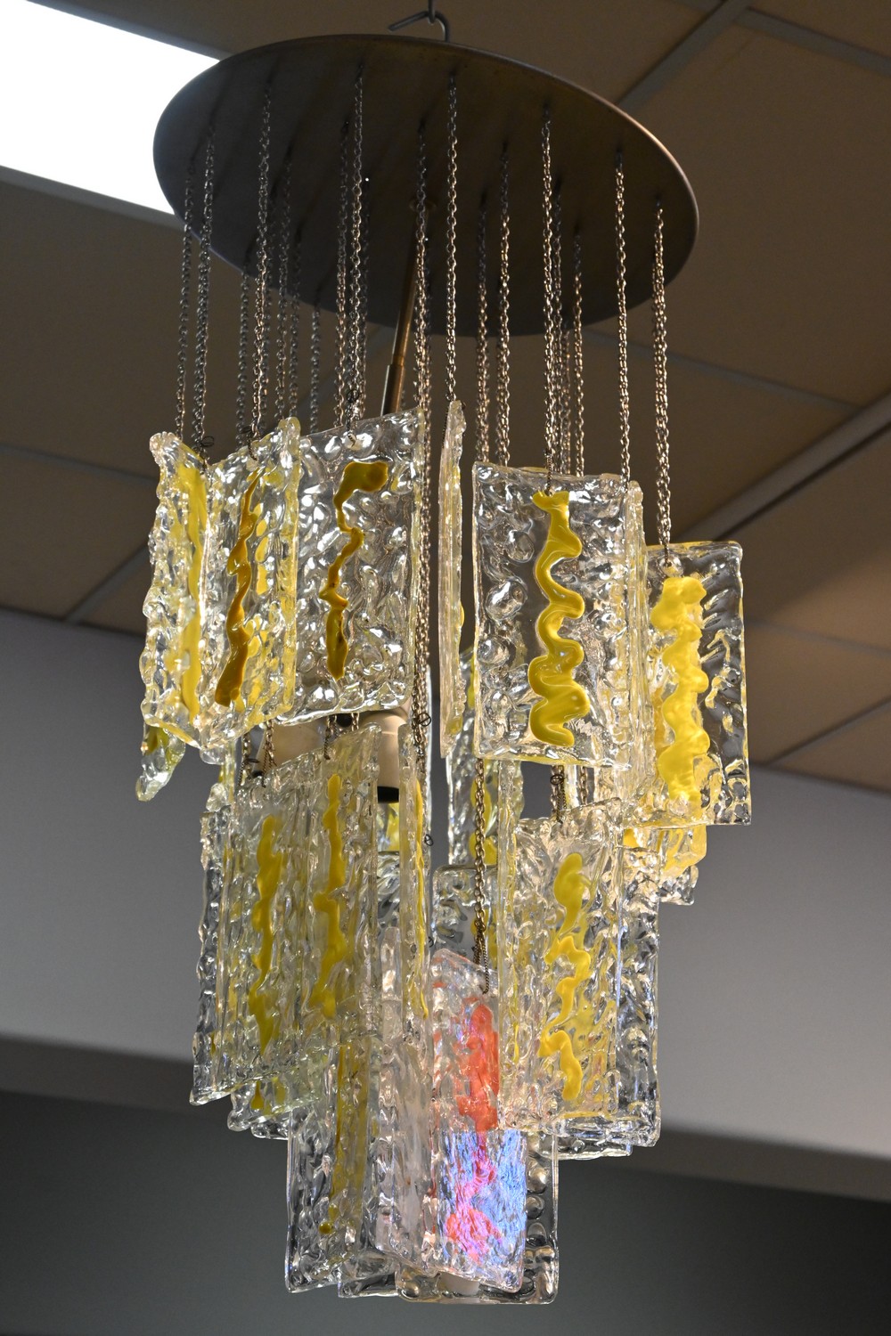 MID CENTURY ITALIAN CHANDELIER BY MAZZEGA FULLY RESTORED, C.1970'S - MISSING PIECE (A/F) (H79 X D40 CM) (PLEASE NOTE THIS ITEM MUST BE REMOVED BY CARRIERS AT THE CUSTOMER'S EXPENSE. LEONARD JOEL STAFF CANNOT ASSIST CARRYING THIS ITEM)