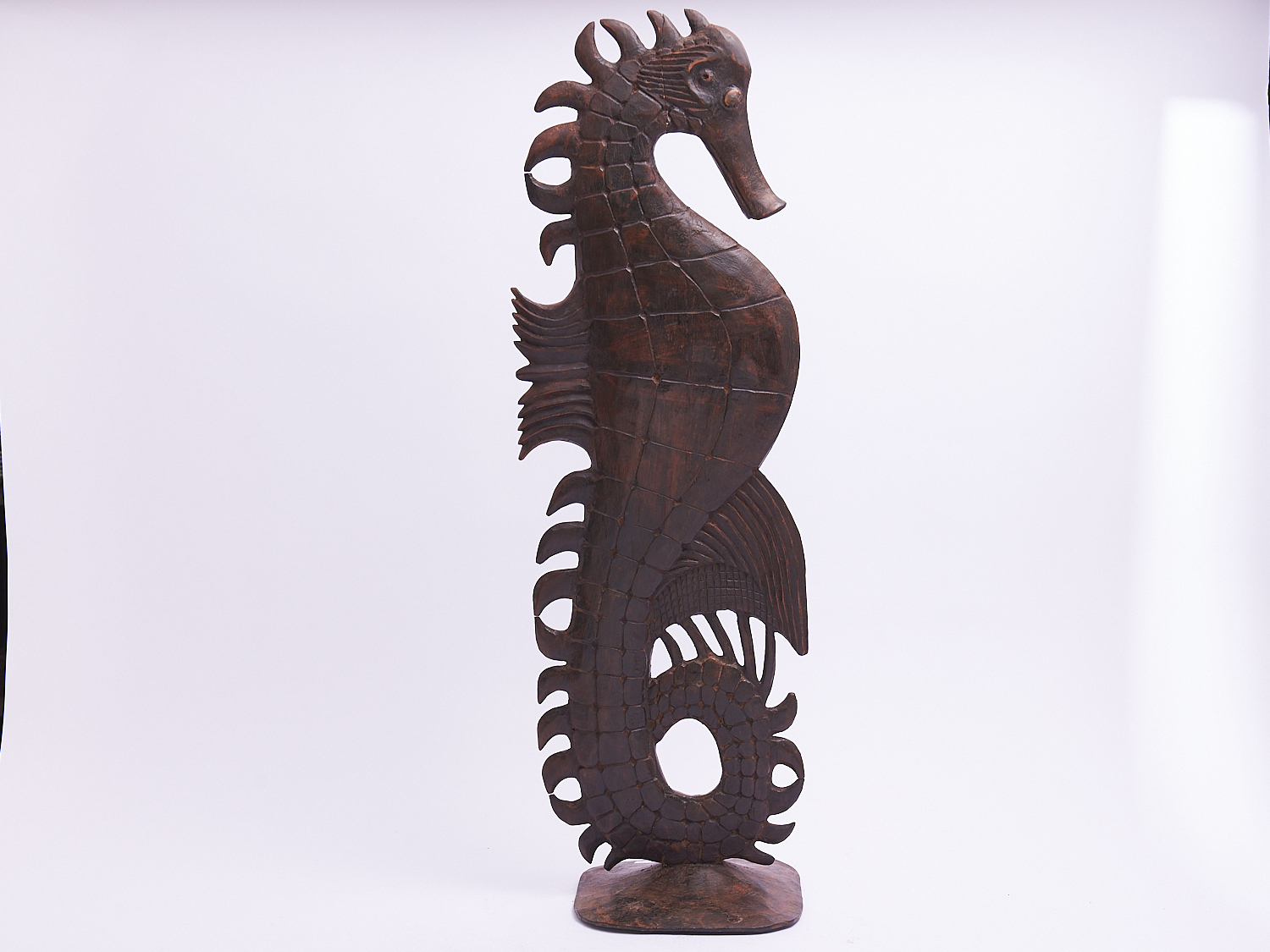 A DECORATIVE WOODEN SEAHORSE 82h x 18w x 21d, LEONARD JOEL LOCAL DELIVERY: MEDIUM