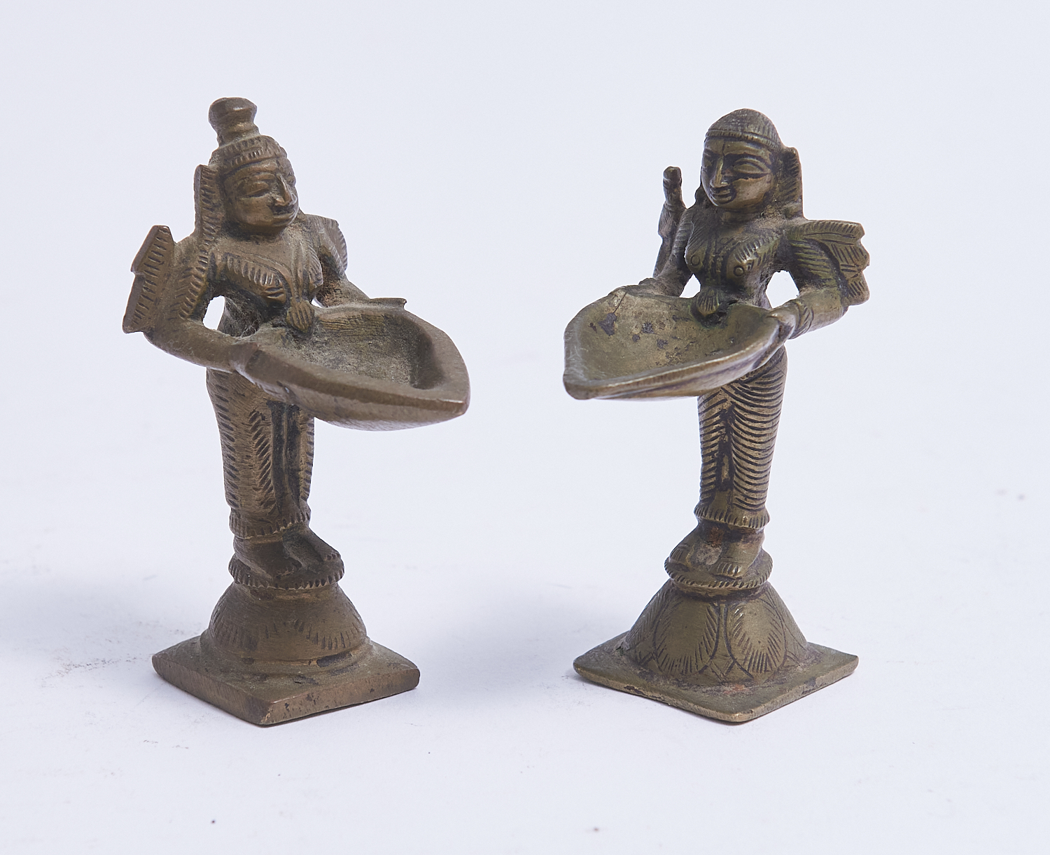 A PAIR OF THAI BRONZE FIGURES H.9CM, LEONARD JOEL LOCAL DELIVERY: SMALL