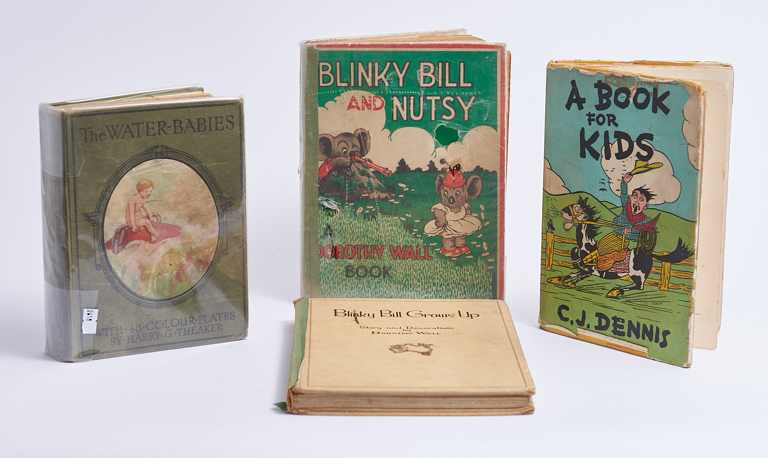 A PART SHELF OF CHILDRENS BOOKS INCLUDING THE WATER BABIES, BLINKY BILL AND NUTSY