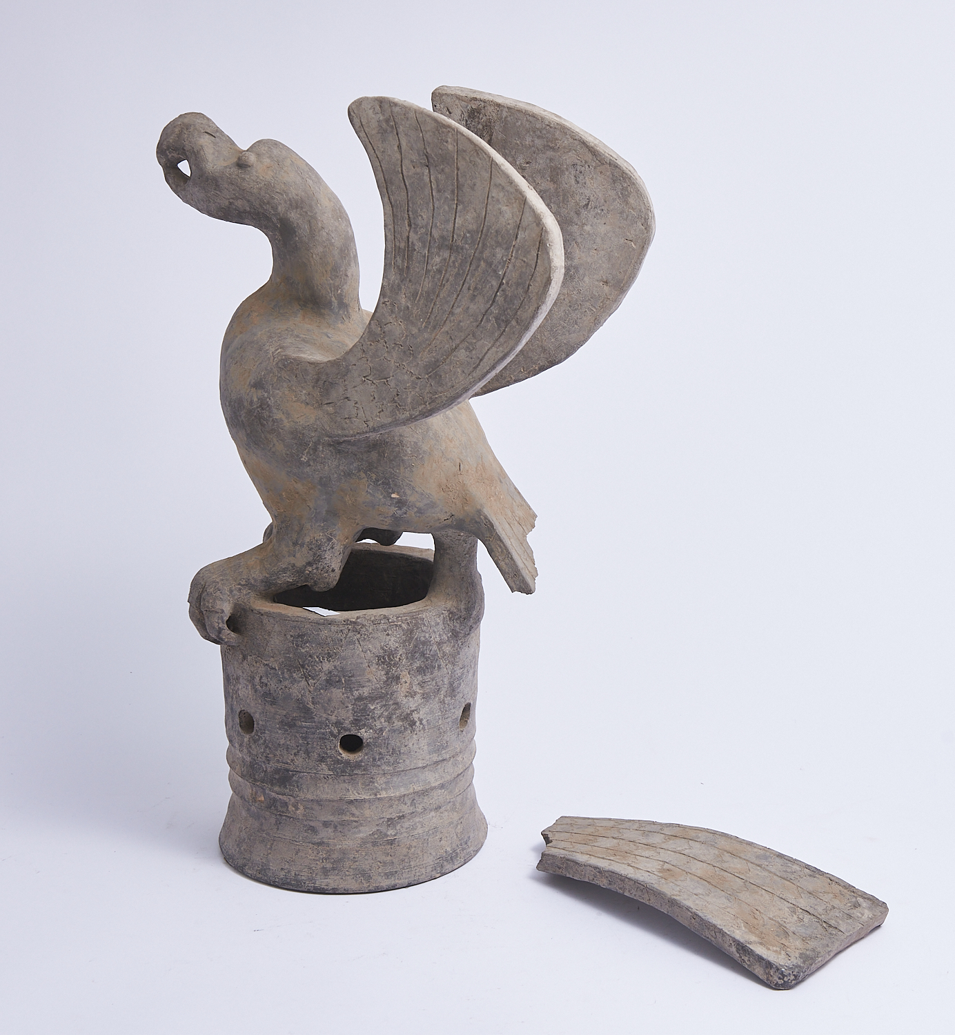 A CHINESE POTTERY TOMB STYLE EAGLE (A/F), H.48CM, LEONARD JOEL LOCAL DELIVERY SIZE: MEDIUM