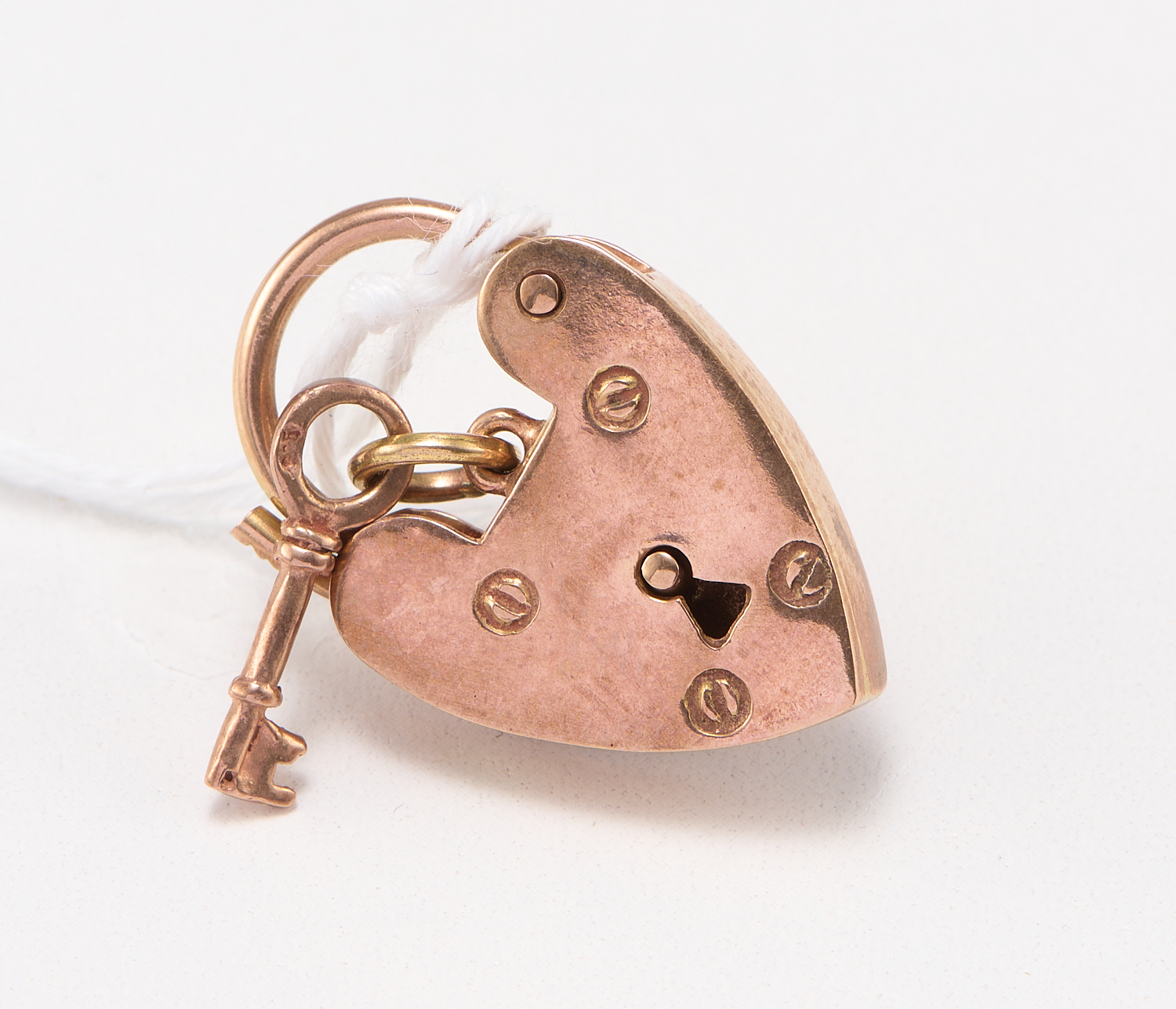 A PADLOCK & KEY IN 9CT ROSE GOLD, 25MM X 17MM, 4.9GMS