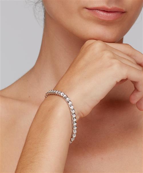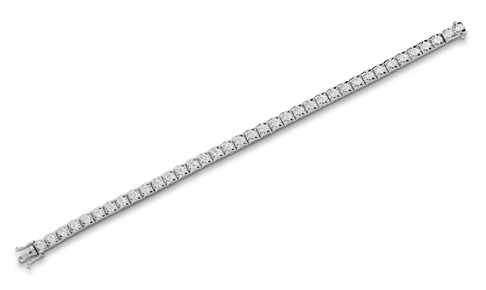 Composed of a line of articulated links of three-dimensional form, claw-set with 37 brilliant-cut diamonds completed by a concealed box clasp, the diamonds together stated to weigh 3.96 carats, mounted in 18ct white gold, length 180mm.