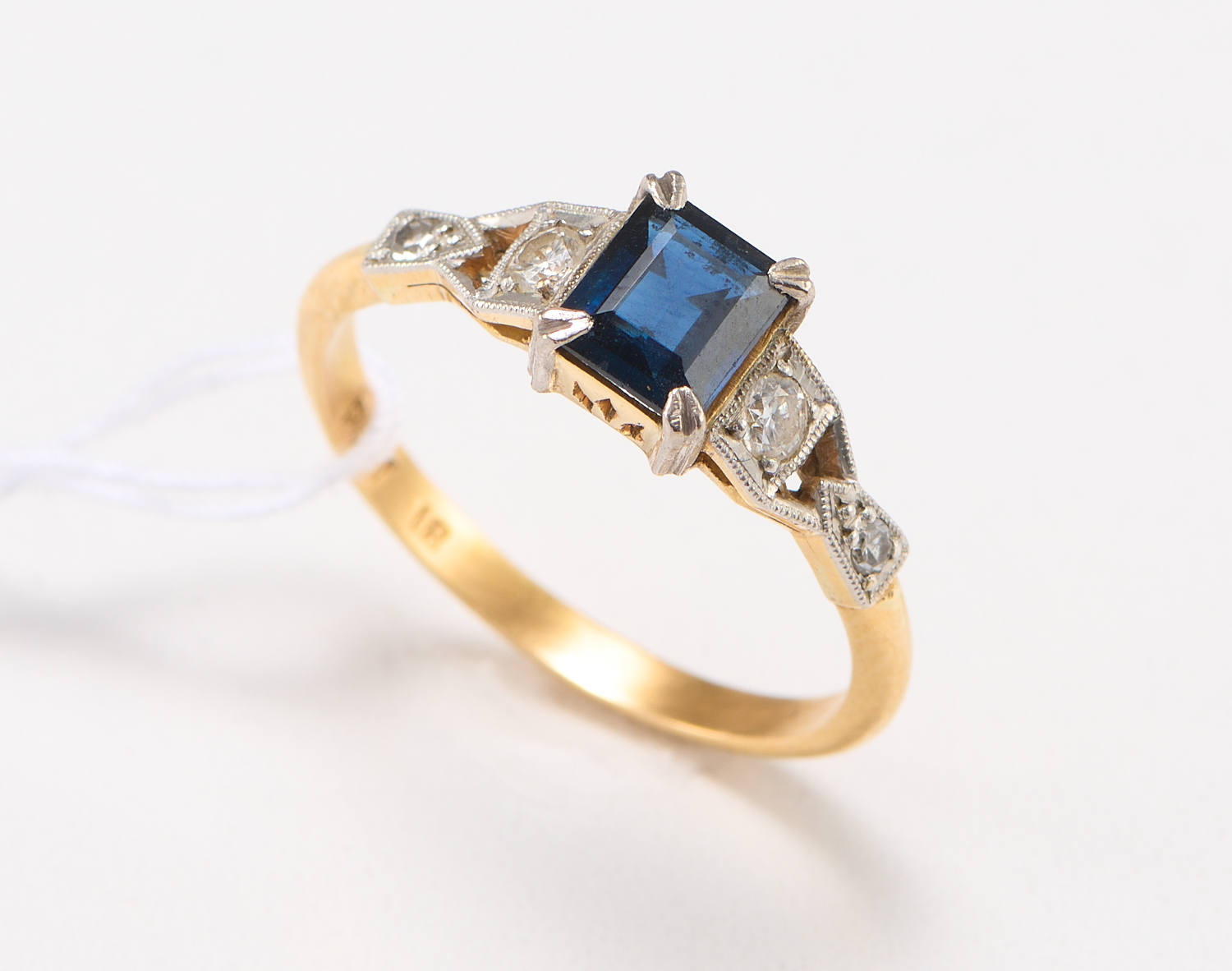 A VINTAGE SAPPHIRE AND DIAMOND RING IN PLATINUM AND 18CT GOLD, RING SIZE O, 2.845GMS