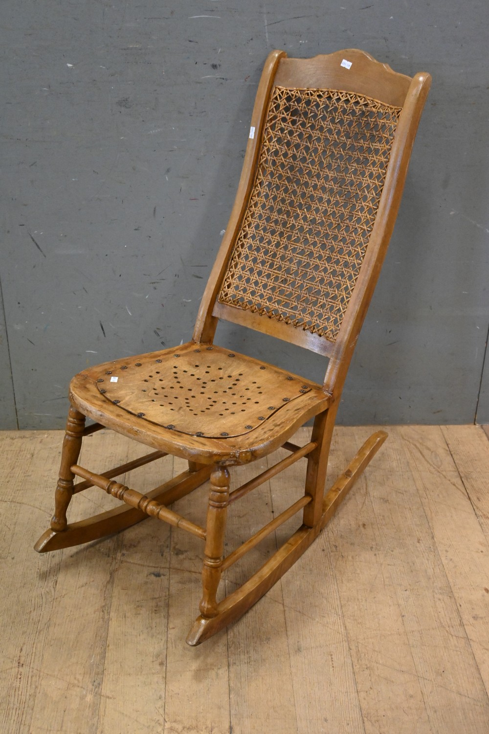 AN ANTIQUE "LUTERMA" ESTONIAN ROCKING CHAIR (A/F) (85H X 43W X 80D CM) (LEONARD JOEL DELIVERY SIZE: LARGE)