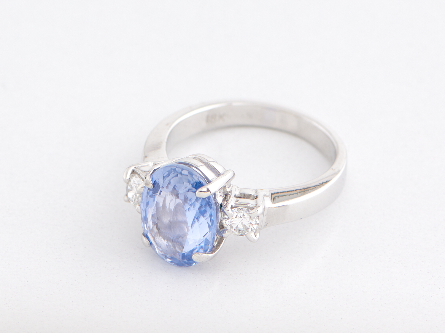 A SAPPHIRE AND DIAMOND RING IN 18CT WHITE GOLD, RING SIZE M, THE SAPPHIRE TOTALLING 8.70CTS, THE DIAMONDS TOTALLING 1.25CTS, ACCOMPA...
