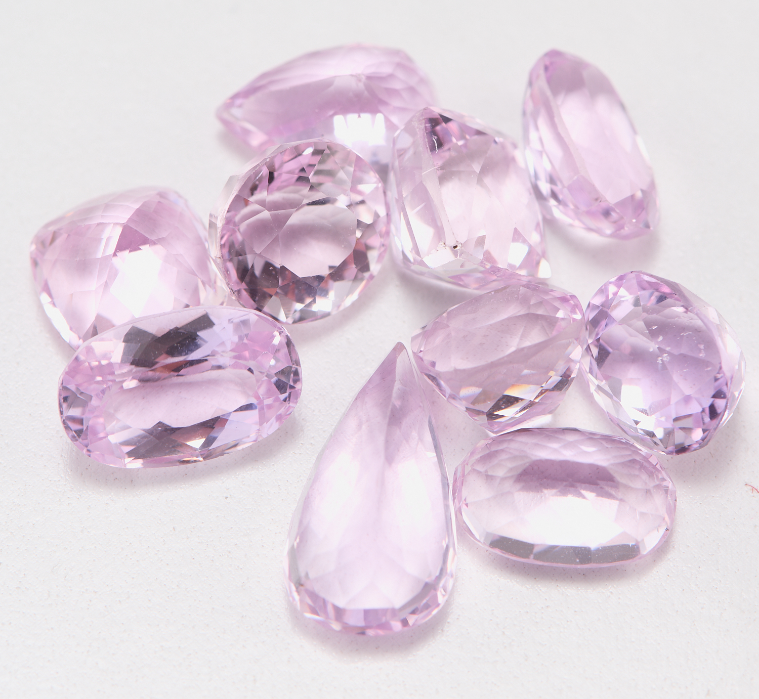 A COLLECTION OF 12 LOOSE KUNZITES, COMPRISING OVAL, PEAR, CUSHION AND ROUND CUT, 52.95CTS
